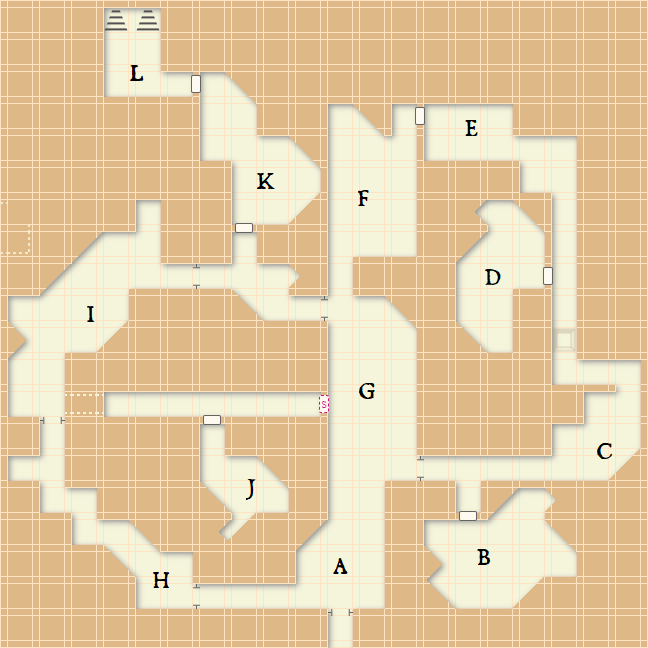 H) Empty but for a natural spring from the south wall, the sound of which makes wandering monsters more difficult to hear.
